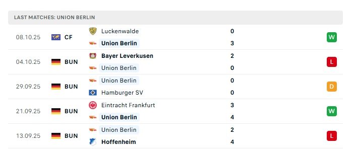 - Phong độ gần đây Union Berlin