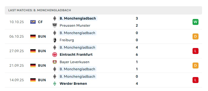 - Phong độ gần đây M’gladbach