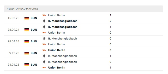 Lịch sử đối đầu Union Berlin vs M’gladbach