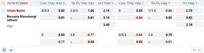 - Kèo tỷ số H1 Union Berlin vs M’gladbach: 0-0