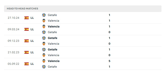 - Kèo tỷ số H2 Valencia vs Getafe: 2-1