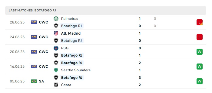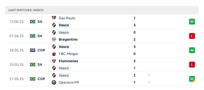Phong độ gần đây Vasco  vs Botafogo/RJ