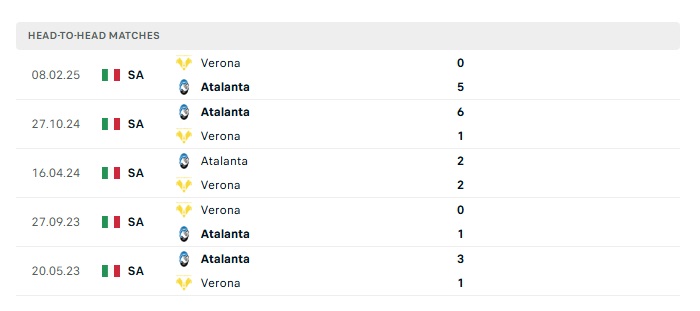 Nhìn vào sự vượt trội của Verona, họ chắc chắn sẽ tự tin đánh bại Atalanta tại sân nhà của mình hôm nay. Trong 6 lần gần nhất đến làm khách tại sân của Verona, Atalanta đang bất bại toàn diện cùng 5 chiến thắng và hòa 1. Cũng cần nhắc thêm rằng trong 4 trận sân nhà gần nhất của Verona, họ chỉ hòa 1 và thua 3.