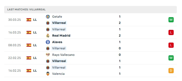 - Phong độ gần đây Villarreal