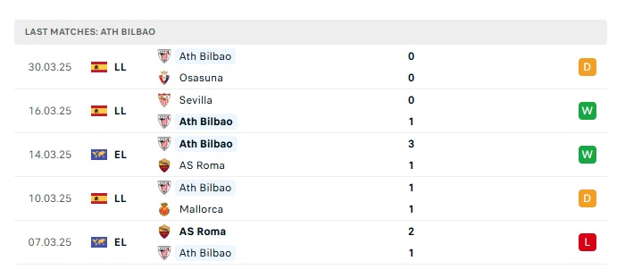 - Phong độ gần đây Athletic Bilbao