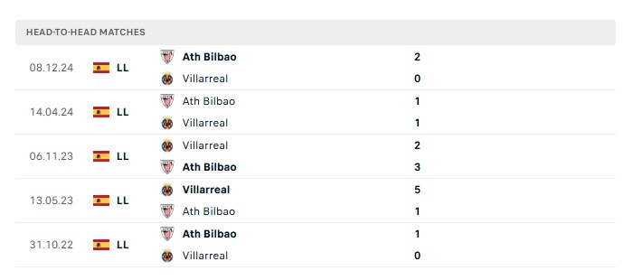 Phong độ gần đây Villarreal vs Athletic Bilbao