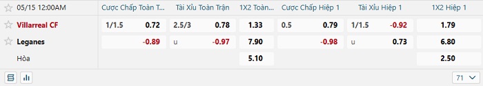 Hiện tại, nhà cái niêm yết cho Villarreal mức chấp -1 1/4 là hoàn toàn chính xác và họ có thừa sự tự tin để mang về lợi nhuận cho người hâm mộ. Trong 6 lần đụng độ nhau gần nhất của hai đội, Villarreal đã thắng kèo 5 chỉ thua 1. Ngoài ra thì trong 3 lần gần nhất Tàu Ngầm Vàng đón tiếp Leganes tại sân nhà, họ cũng đã thắng kèo 2 và thua 1. Do đó, kèo châu Á trận đấu hôm nay sẽ có đội chủ nhà là lựa chọn tối ưu nhất.