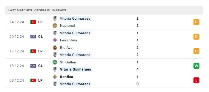 Phong độ gần đây Vitoria Guimaraes vs Sporting Lisbon