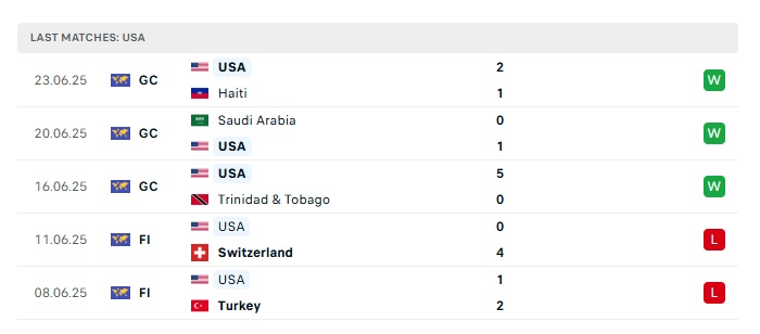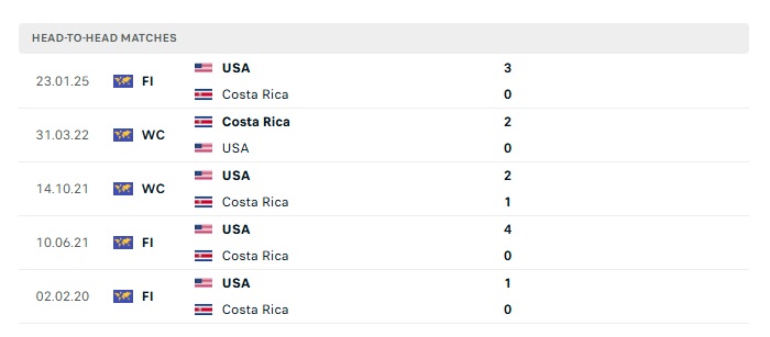 Phong độ gần đây Mỹ vs Costa Rica