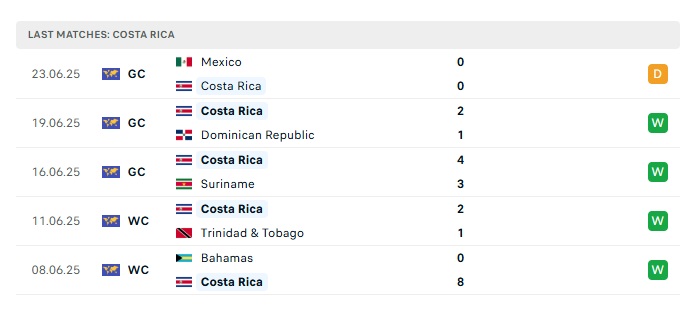 - Phong độ gần đây Costa Rica
