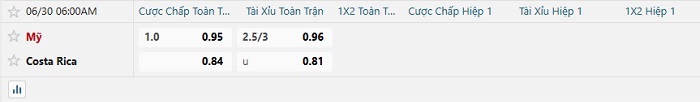 Soi kèo châu Á, kèo Mỹ vs Costa Rica