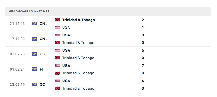 Lịch sử đối đầu Mỹ vs Trinidad & Tobago