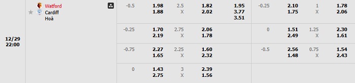 Soi kèo châu Á, kèo Watford vs Cardiff City
