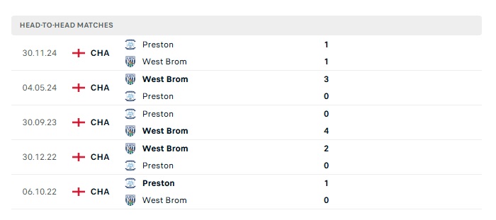 - Kèo tỷ số H2 West Brom vs Preston North End: 1-0
