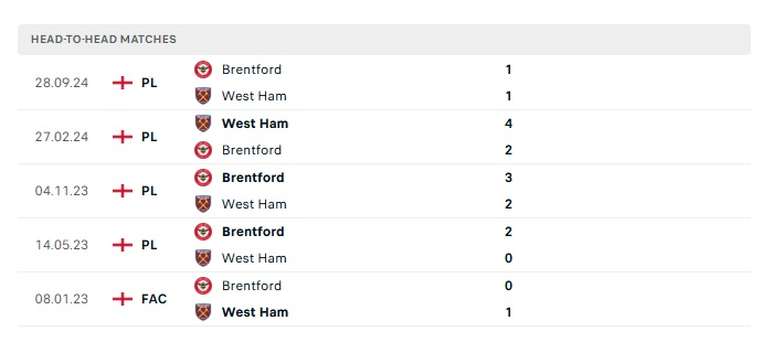 Lịch sử đối đầu West Ham Utd vs Brentford