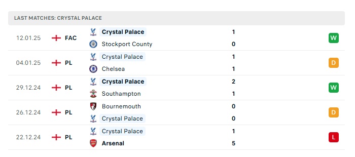 Phong độ gần đây West Ham Utd vs Crystal Palace