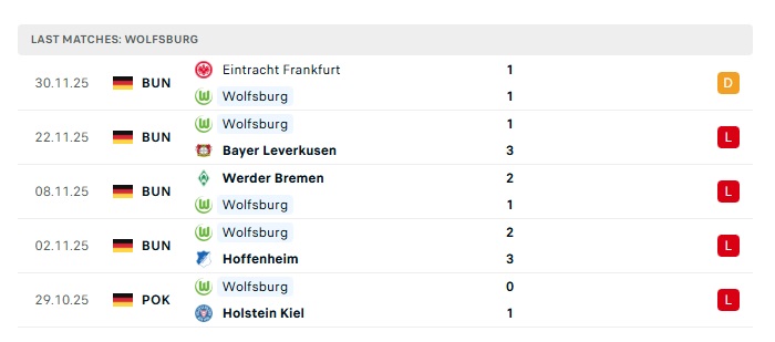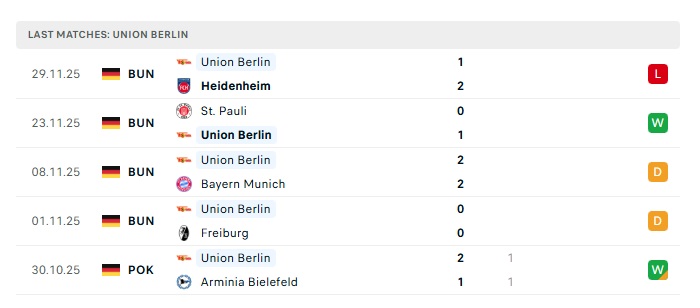 Phong độ gần đây Wolfsburg vs Union Berlin