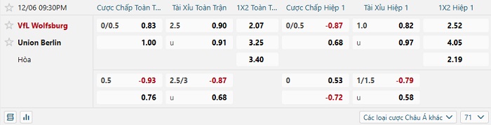 Bảng tỷ lệ kèo nhà cái Wolfsburg vs Union Berlin