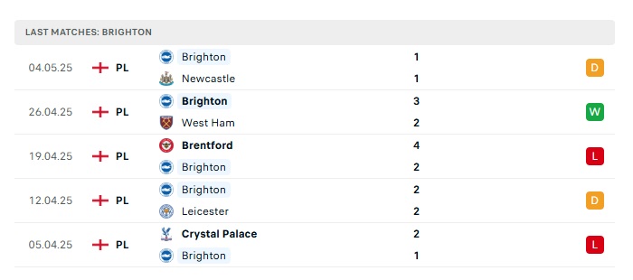 Dựa vào các thống kê được đưa ra, các chuyên gia đều tin rằng Brighton sẽ không thể nào áp đảo đối thủ. Trong hiệp 1, cả hai đều thi đấu không thể tấn công quá mạnh mẽ nên hòa nhau không bàn thắng. Đến hiệp 2, họ vẫn thi đấu rất cầm chừng và không tạo ra được nhiều cơ hội. Qua đó, 90 phút thi đấu hôm nay sẽ khép lại mà không có bàn thắng nào được ghi.