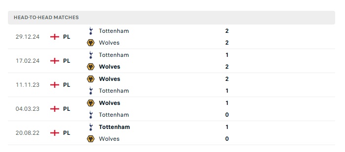- Kèo tỷ số H2 Wolves vs Tottenham: 1-0